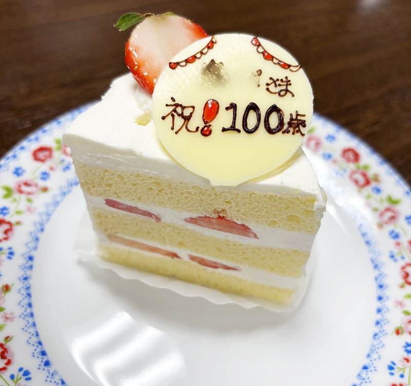 先日100歳を迎えられた方の誕生日ケーキをお願いしたところ、
