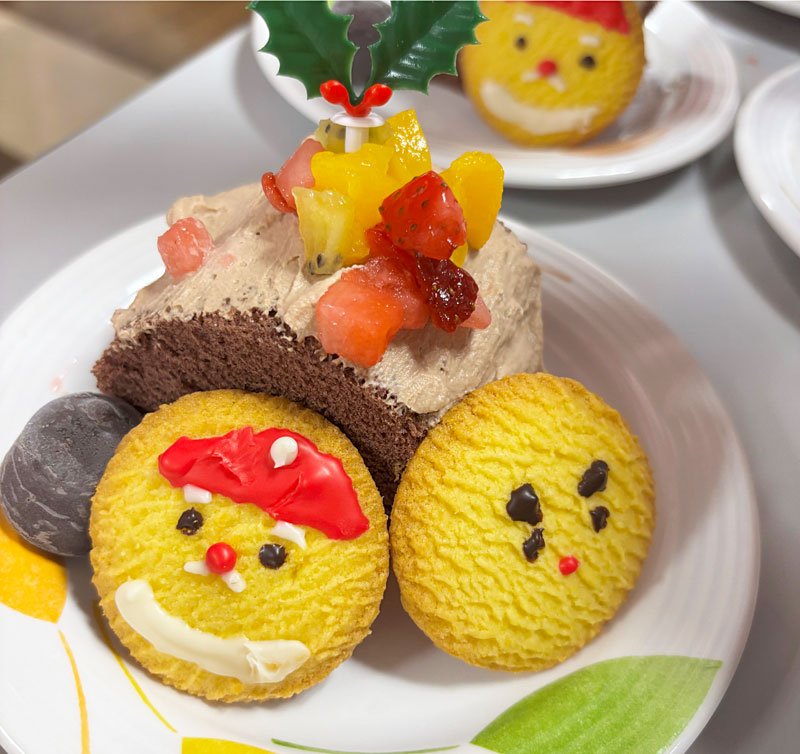 クリスマス仕様のケーキも提供し、豪華なおやつとなりました。